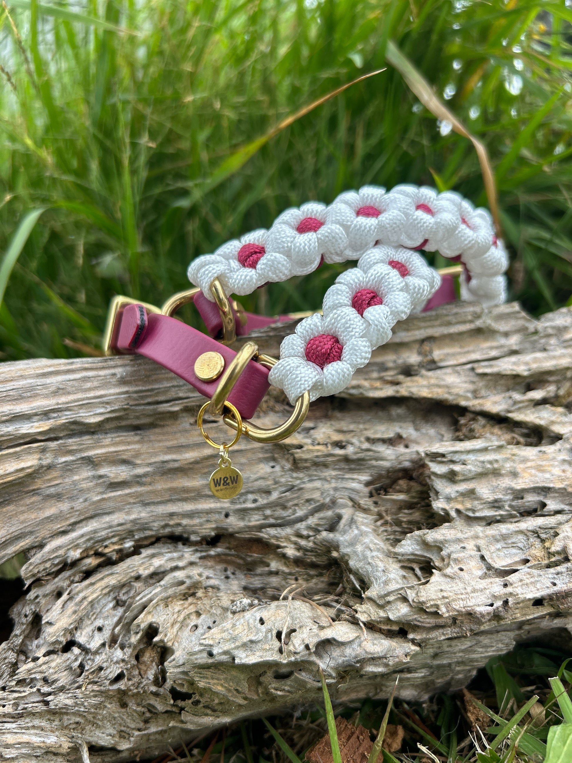 BioThane keeps maintenance simple — waterproof, easy to wipe clean, and ready for muddy walks, beach runs, and everything in between. Hand wash the paracord braid to keep it lasting longer than any real flower could.