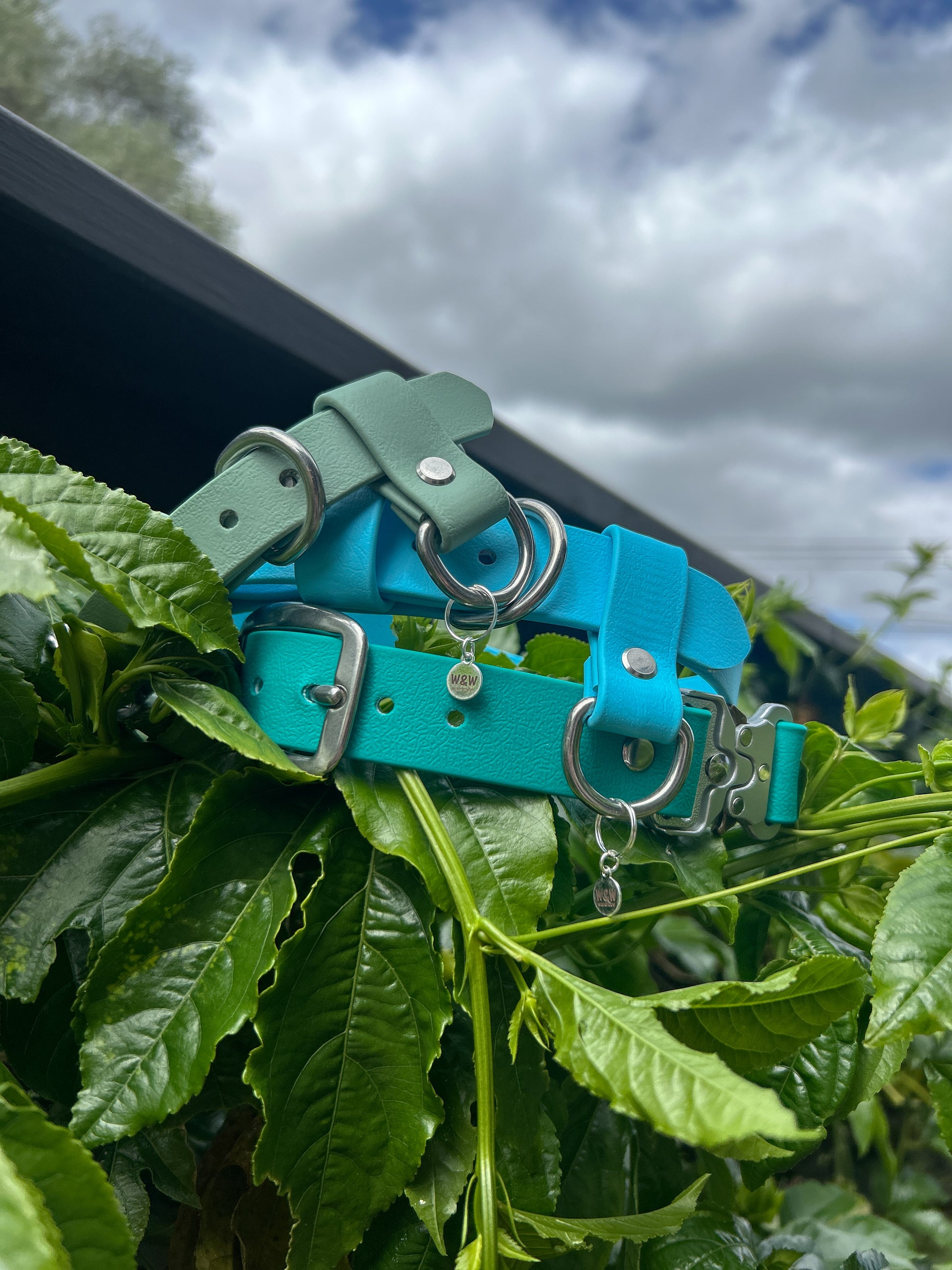 Handmade using 3/4" or 1" BioThane®, this collar is as tough as it is stylish. Lightweight, gentle on your pet’s skin, and easy to clean, it’s also waterproof, stink-resistant, mould-resistant, and built to withstand the elements. Whether it’s a rainy day or a muddy adventure, your collar will look as good as new.