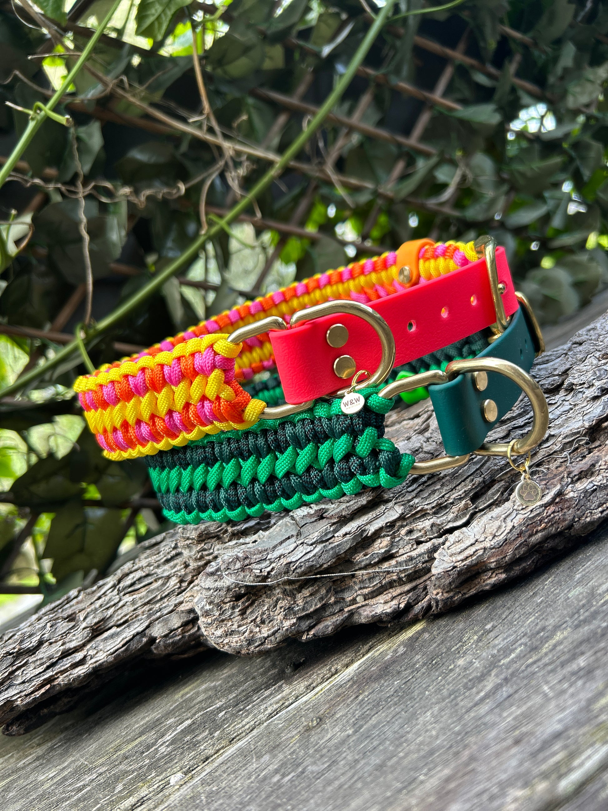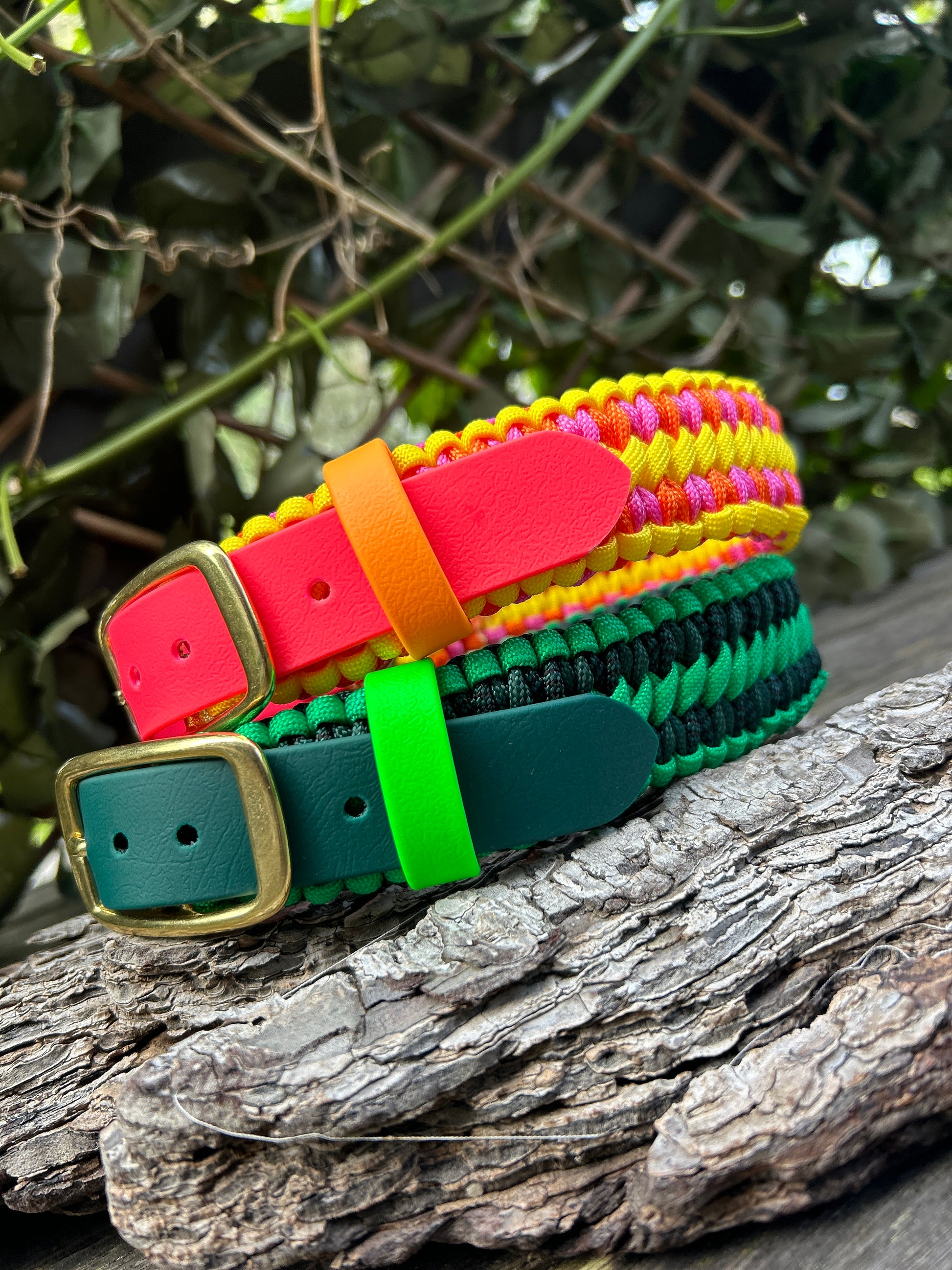 Get ready to make a statement with the Double Trouble Biothane® Collar! Designed for pet owners who want to add a vibrant splash of colour to their dog's wardrobe, this collar offers a striking double-pop design that’s sure to turn heads wherever you go.