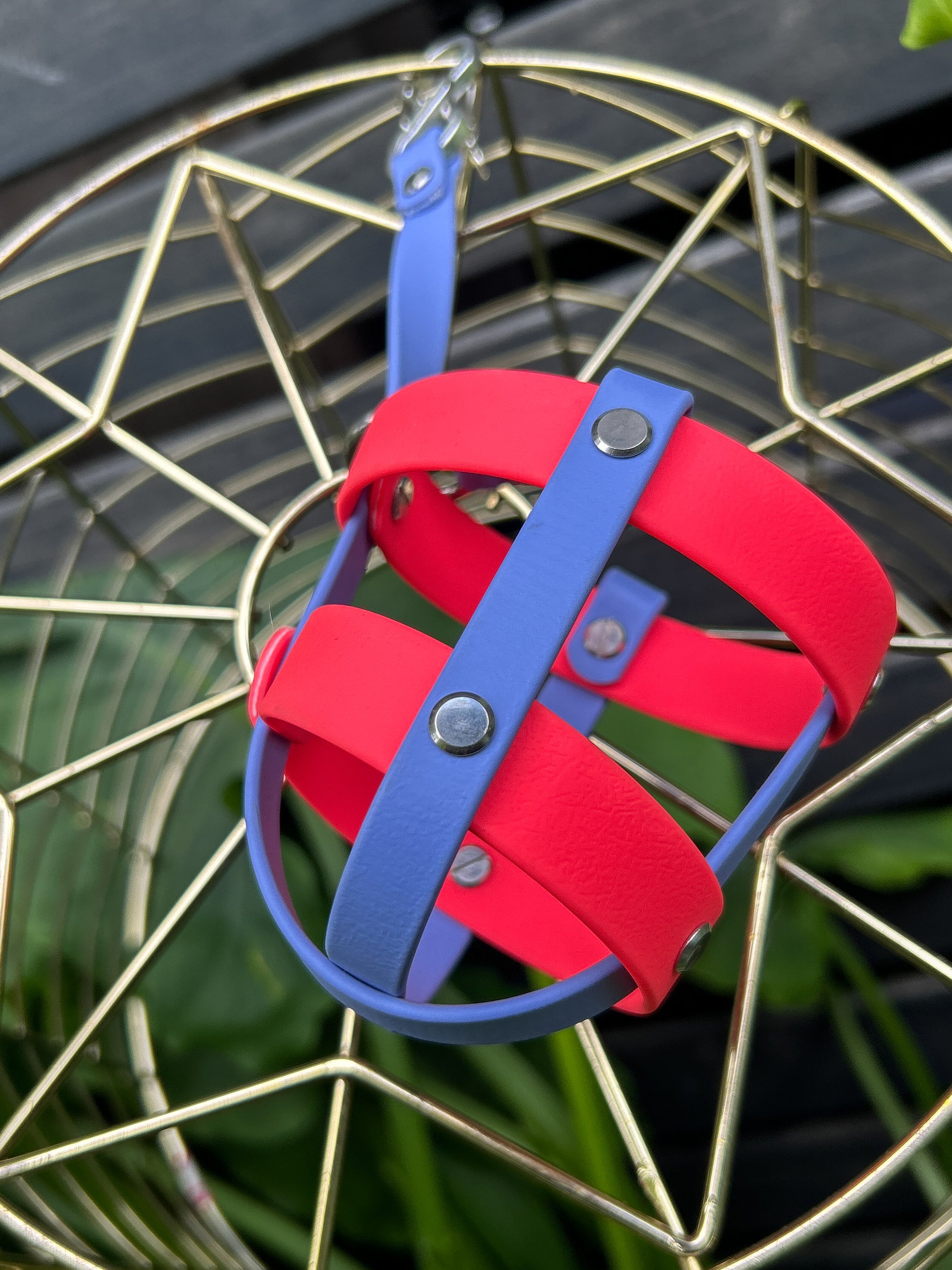 This double ball holder is loud, wild, and a little bit chaotic – just how we like it. Decked out in hot pink and periwinkle with stainless stee; hardware, it's giving circus fire meets sugar rush. Built for the fetch-obsessed and the clown-hearted, this fiery number doesn’t just hold their toys – it announces them.