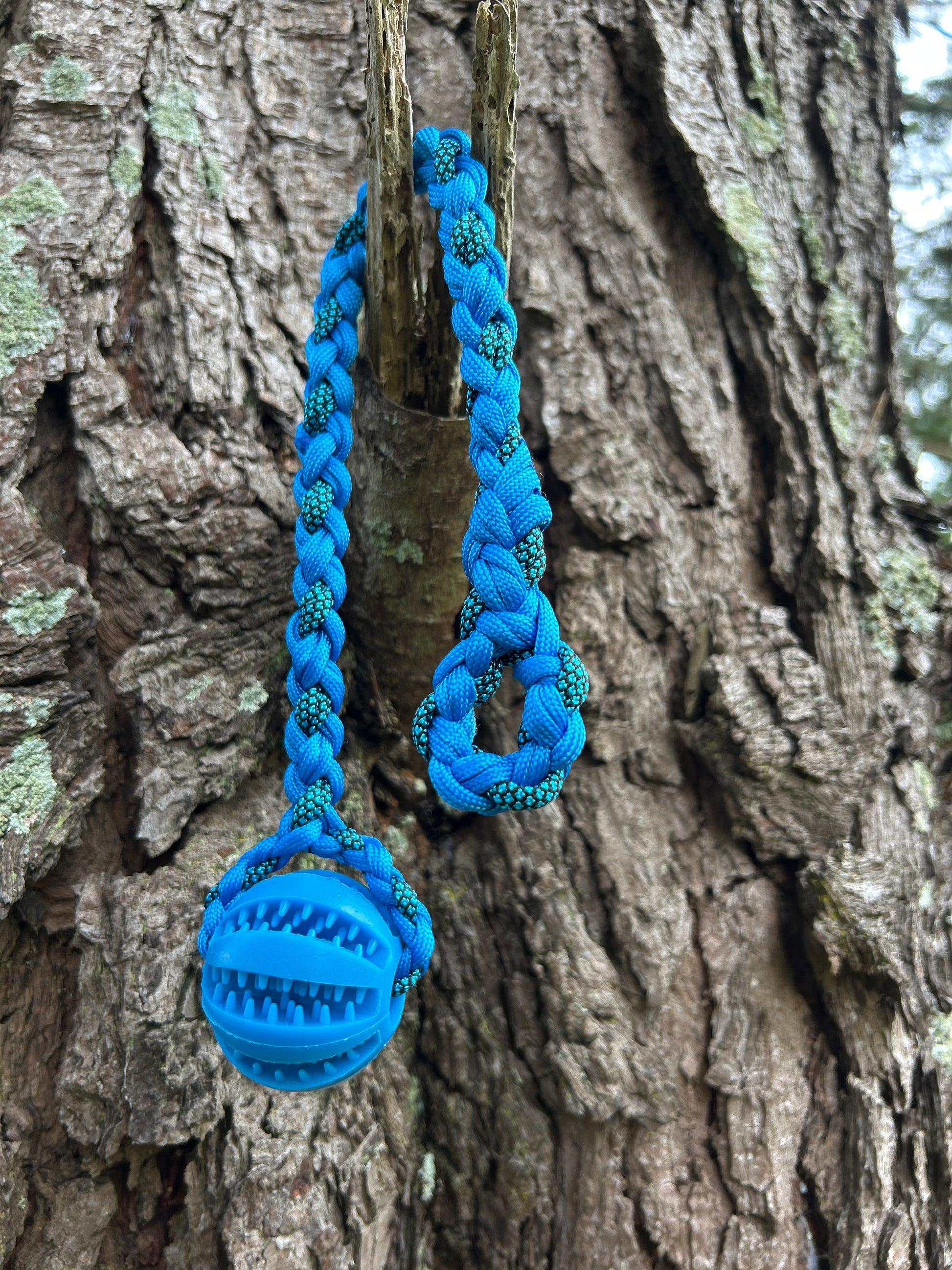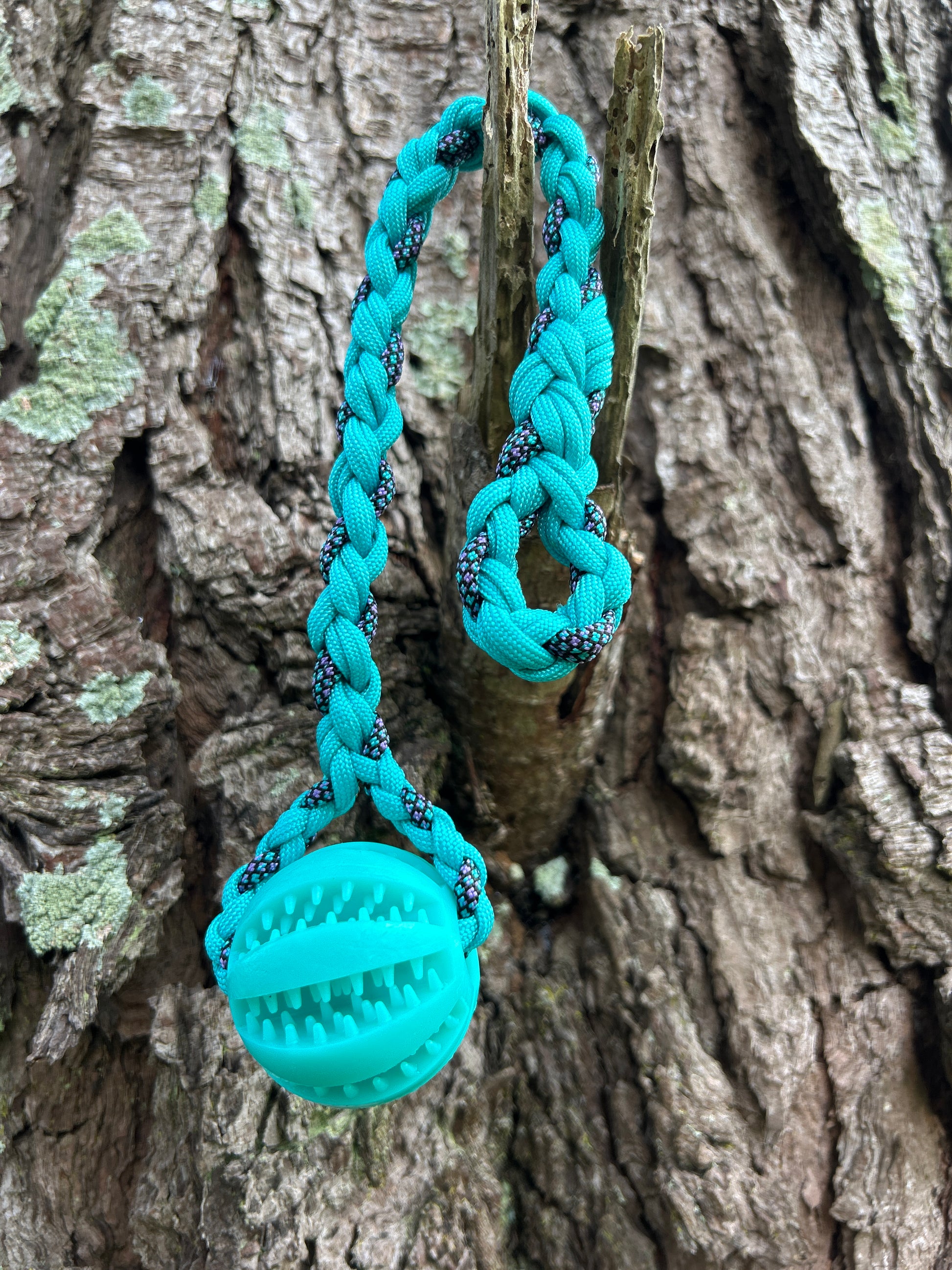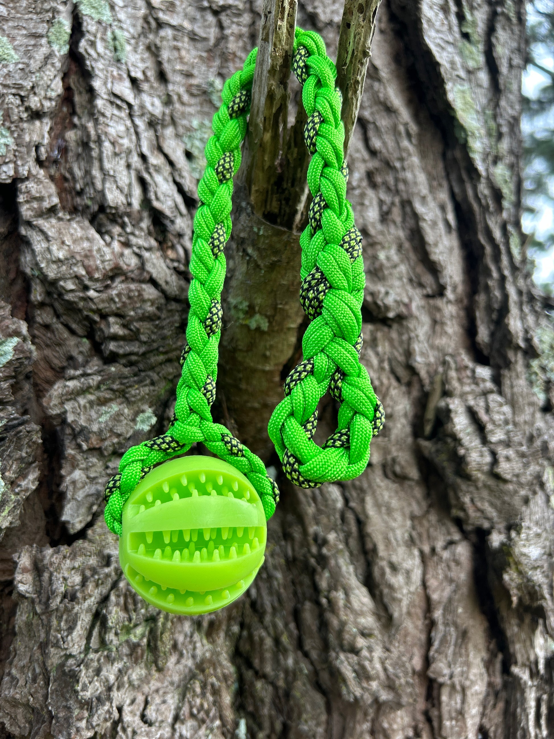 To spare our hands from those razor–sharp puppy nibbles, each ball is braided into a mini drag line with a small loop at the end. Use it as a handheld toy for play-and-chase sessions, clip a long line to reinforce recall with a bit more excitement, or tuck treats into the grooves and watch your puppy go feral in the best possible way.