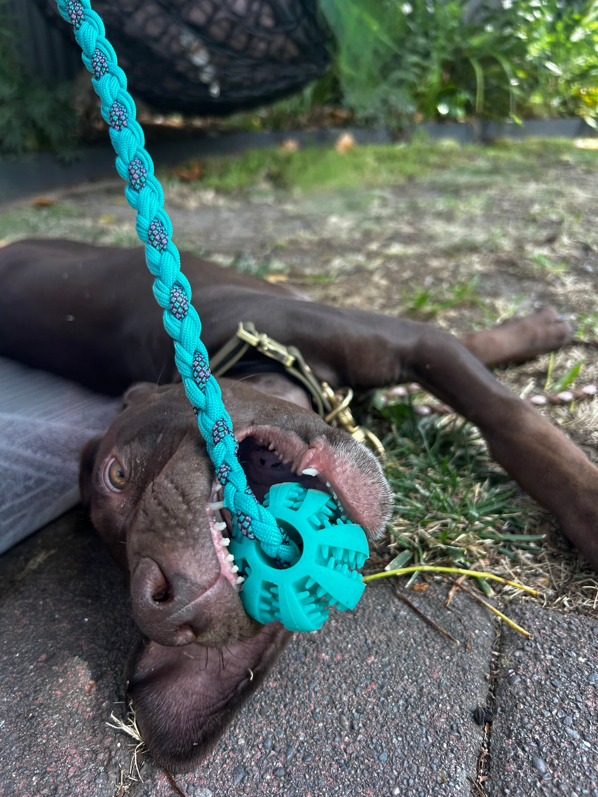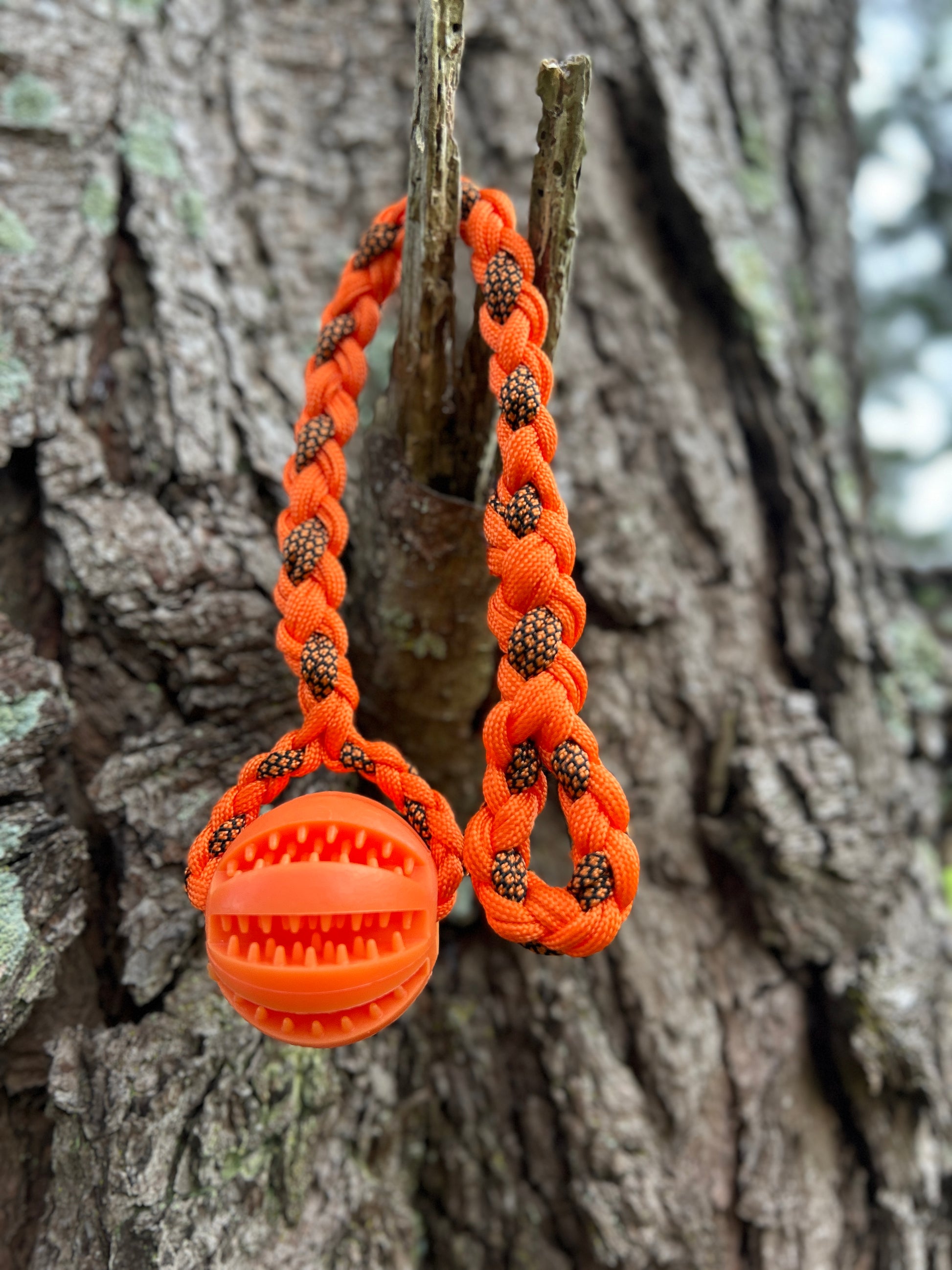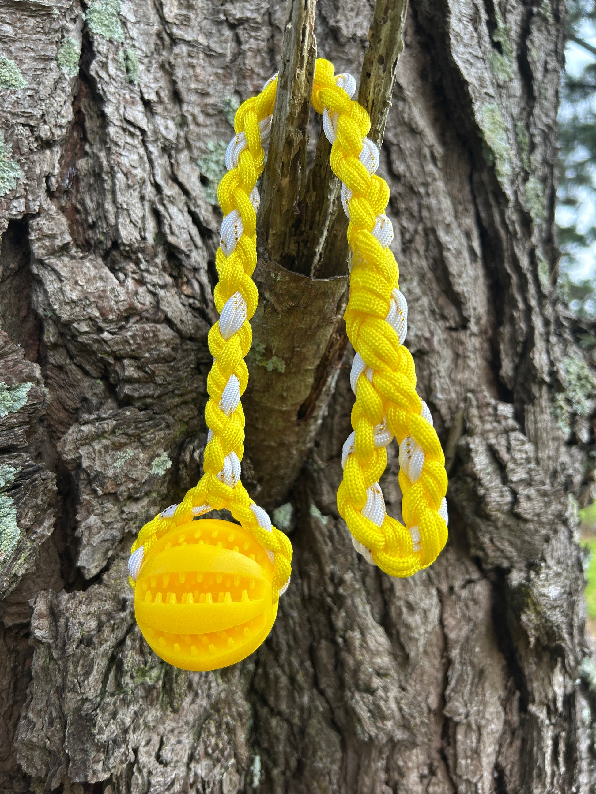 To spare our hands from those razor–sharp puppy nibbles, each ball is braided into a mini drag line with a small loop at the end. Use it as a handheld toy for play-and-chase sessions, clip a long line to reinforce recall with a bit more excitement, or tuck treats into the grooves and watch your puppy go feral in the best possible way.