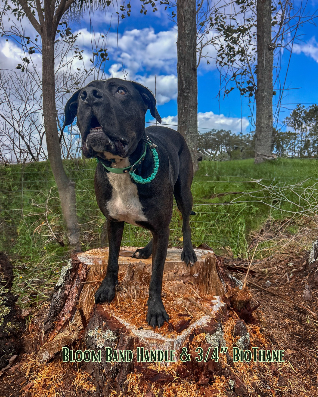 Built for dogs who carry wildflower energy in a structured world. This versatile design comes in two stunning styles: a flush flower braid nestled neatly over a section of 1" Biothane, or a braided handle that blooms right in your grip. Both variations celebrate the blend of form and function, offering beauty without compromising durability. Whether you're drawn to the detail or the practical floral twist, this collar is here to prove that pretty can still mean powerful.