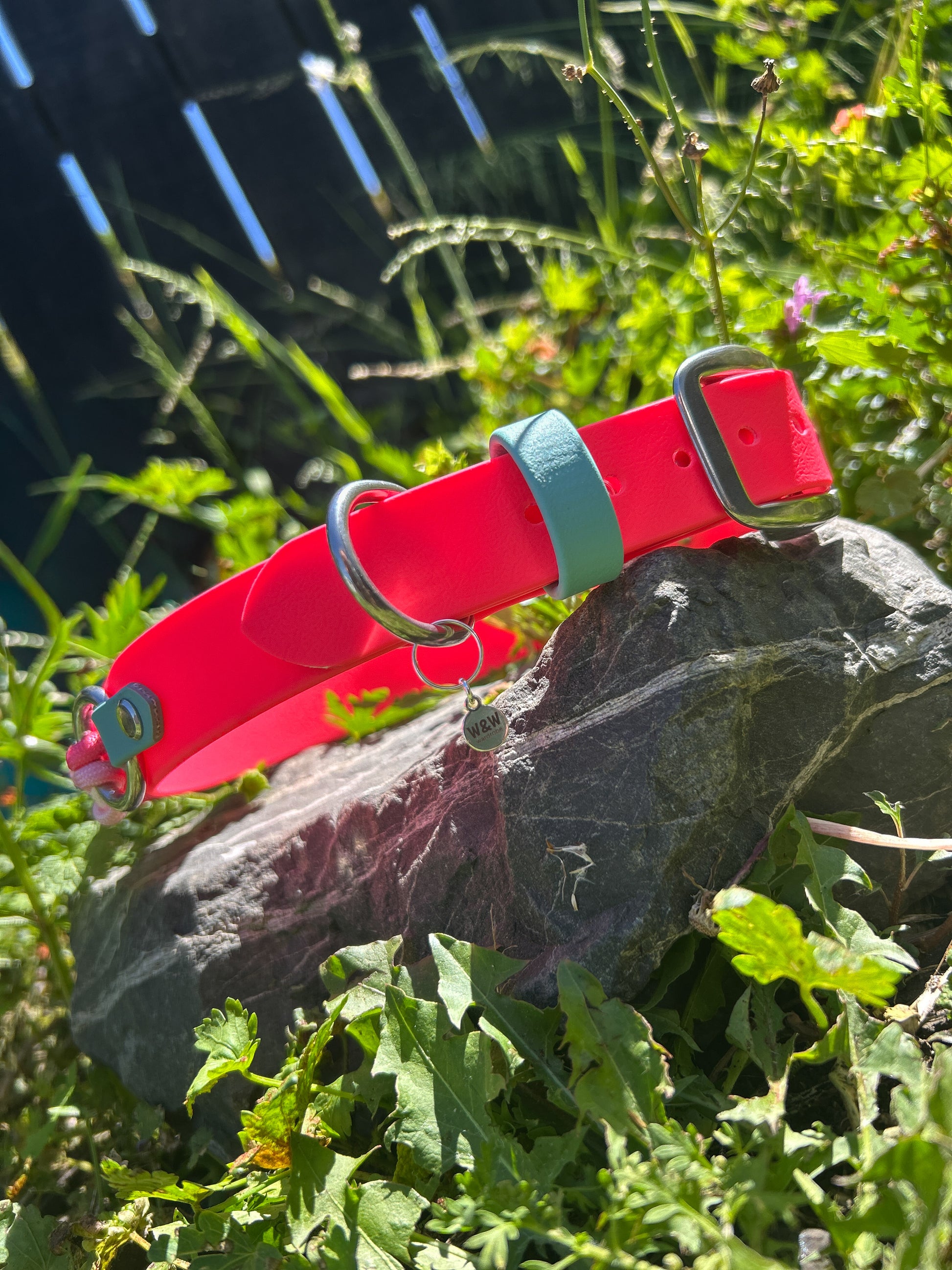 Functionality: Though the design leans into soft, floral aesthetics, make no mistake—this collar is ready for real-world wear. The Biothane band is waterproof, stink-proof, and easy to clean, while the flower braid adds grip, personality, and flair. Whether you opt for the braid-as-handle style or the flush decorative overlay, both are suited to dogs who explore boldly and look good doing it.